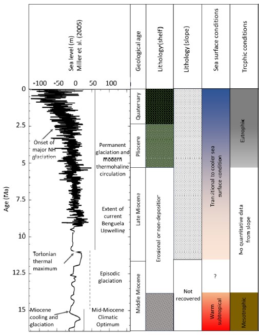 Environments on Earth have changed continuously through the entire span of geologic history. The past understanding of environments can assist us in determining modern changes that are occurring. This type of research can even inform us on policy changes and how we will need to adapt to changing environments. Research in this field also inform us on sea level changes and by how much sea levels can rise with increasing carbon dioxide levels in the atmosphere. This is achieved through analysing rock sequences, sediments and fossils. Research by Dr Bergh, his students and assistant researchers have conducted and are still conducting this type of research along the western and southern margins of southern Africa in time intervals ranging from 16 million years ago to present.